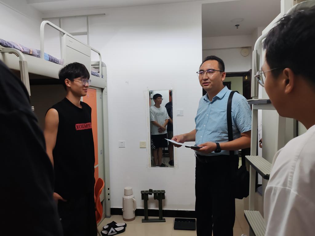 为切实做好2024级新生入学教育管理工作,及时了解学生的思想动态和住宿情况,帮助新生尽快适应新的生活环境。2024年9月3日晚,学校党委常委、纪委书记、监察专员李淳带领pp电子模拟器网站全体领导班子、2024级新生班主任、辅导员和学生干部深入2024级研究生和本科生新生宿舍,与新生们面对面交流,了解新生到校后的生活状况及需求,帮助他们更好适应大学生活。
