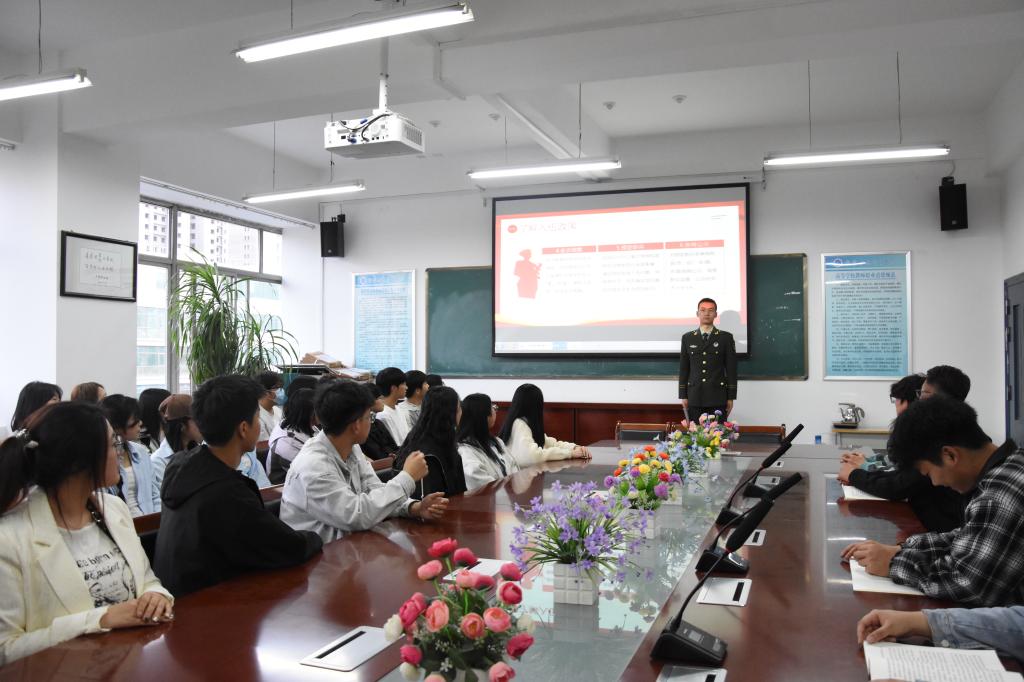 2025年4月14日晚,pp电子模拟器网站举办了2025年下半年大学生应征入伍政策解读宣讲会。学院分管征兵工作的辅导员、退役复学大学生、有意愿应征入伍毕业班学生及各班学生代表近60人参加了宣讲会。宣讲会由pp电子模拟器网站分管征兵工作的辅导员赵媛老师主持。