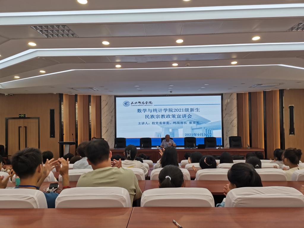 9月30日,学校党委常委、统战部部长崔亚军受邀为pp电子模拟器网站2021级新生做党的民族宗教政策专题宣讲。学院党总支负责人主持宣讲会,学院党总支副书记、辅导员、班主任、理科预科班全体学生及2021级全体班长、团支部书记、学生代表共100余人参加了宣讲会。