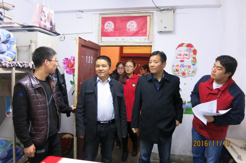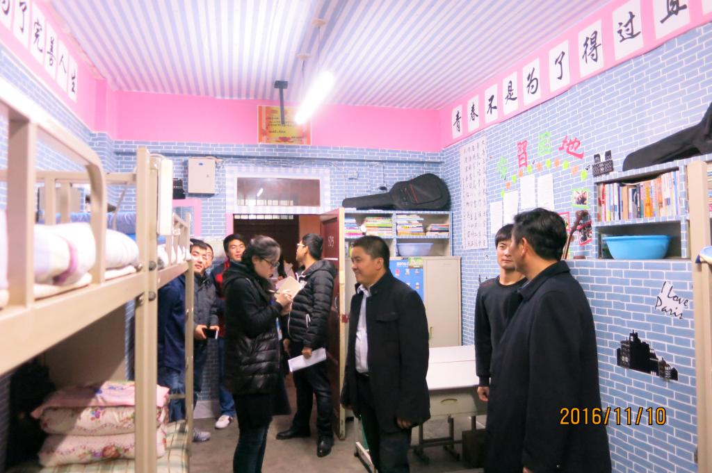 宿舍检查开始后,领导和老师首先进入博学楼对我院男生宿舍进行检查。在检查过程中,吴书记和崔书记对上一次检查评比出的优秀宿舍卫生保持良好,文化墙布置得很有创意等方面连连称赞。在检查云帆女生宿舍时,崔书记亲自对优秀宿舍云帆4-303进行了拍照,他表示,4-303宿舍每个人在床边的墙上粘贴励志标语的装饰方法非常好,这不仅起到了美化作用,还有激励上进的作用,一举两得。在检查上一次评比出的不合格宿舍时,吴书记和崔书记对他们的改进结果十分满意。吴书记告诉他们,卫生关系到每个人的健康问题,所以宿舍卫生一定要重视,重在能够长期保持良好的卫生状态。在整个检查过程中,崔书记每到一间宿舍,都会重强调宿舍用电安全问题,并告诉大家,用电问题关系到每一个人的安全,一定要高度重视。同时他还指出:用电安全与宿舍文化布置同样重要,不可顾此失彼。