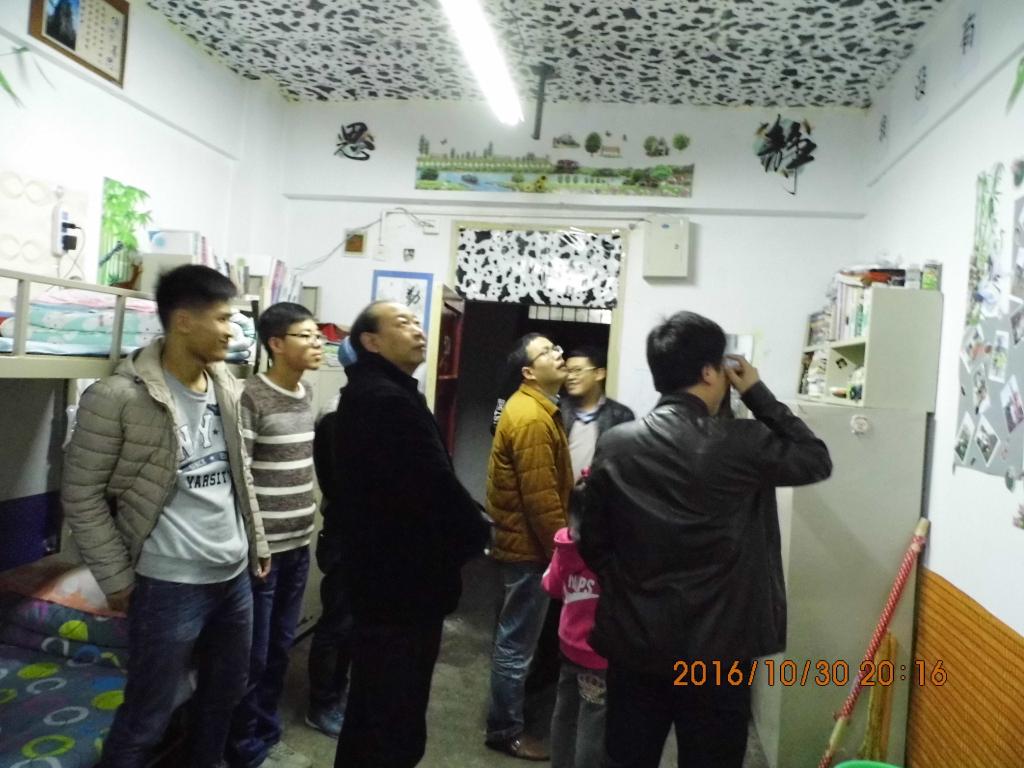 为了加强学生宿舍管理,规范学生行为,提高大学生精神风貌,我院积极响应学校“五星级文明宿舍”活动的号召,pp电子模拟器网站于2016年10月30日晚7:30进行了“星级文明宿舍”检查活动。在我院党总支书记吴树雄、院长王三福、副书记崔德旺、副院长马维学、副院长谢保利的带领下,辅导员、各班班主任以及部分学生会人员深入博学、云帆公寓我院学生宿舍,对我院学生“星级文明宿舍”活动的创建情况进行了检查。本次检查以宿舍卫生、宿舍安全、宿舍主题和宿舍文化氛围建设为重点,分两组对男生宿舍和女生宿舍进行了检查。